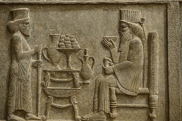 این غذاها، نه تصادفی، بلکه با دقت انتخاب شده بودند. گوشتها، تازه از شکارهای سلطنتی، نمادی از قدرت بودند؛ شترمرغ، که از دشتهای دور آورده میشد، نشاندهنده گستردگی امپراتوری. میوههایی مانند انجیر و انار شیرین و آبدار، از باغهای بابل و شوش میآمدند و در کنار نان خامیز، نوعی نان نازک و ترد که با آرد جو پخته میشد، سرو میشدند.
