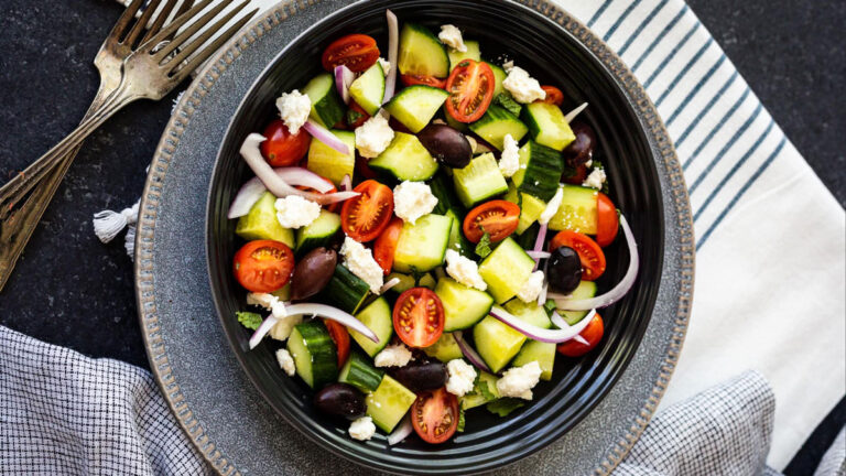 طرز تهیه سالاد یونانی یک پیشغذای مدیترانهای با سس مخصوص