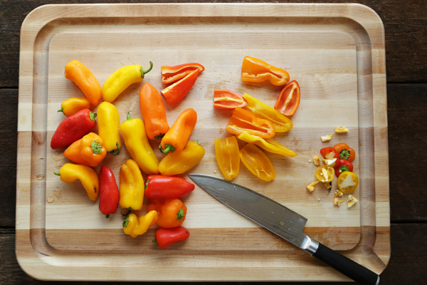 برای این کار، سوسیسها را به صورت نگینی خرد کرده، یا به صورت درشت رنده کنید. همچنین فلفلهای دلمهای را خرد کرده و قارچها را هم به صورت ورقهای برش بزنید.