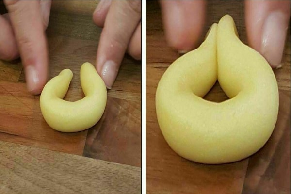 در طرز تهیه شیرینی اشکی با روغن مایع تنها راه شکل دادن به خمیر استفاده از قالب اشکی نیست. خمیر را روی سطح کار قرار دهید. آن را برای ۳۰ ثانیه ورز دهید سپس اندازه یک گردو از آن بردارید. روی صفحه کار خمیر را به شکل لوله در اندازه ۱۰ سانتیمتر دربیاورید. در نهایت دو سر خمیر لولهای را همانند اشک به یکدیگر وصل کنید. اگر ظاهر نعلمانند برای این شیرینی میپسندید پس دو طرف آن را به یکدیگر وصل نکنید. شیرینی پنجرهای بدون نشاسته هم از دیگر شیرینیهای ساده برای ایام نوروز به حساب میآید.