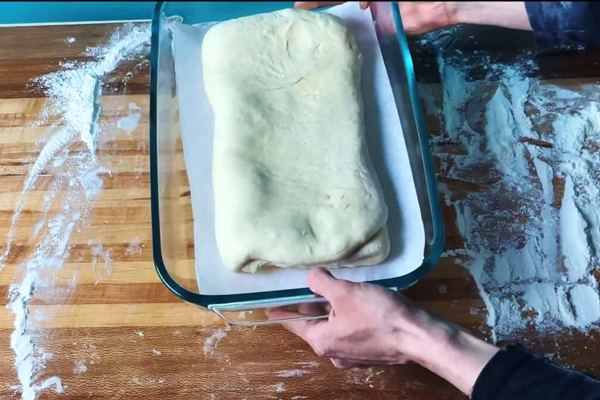 سینی فر را کمی چرب کنید. خمیر را روی آن قرار دهید. حال سینی را به آرامی با پلاستیک خوب بپوشانید. سینی را در یخچال قرار دهید تا خمیر به آرامی و به مدت یک شب استراحت و در اصطلاح وَر بیاید.