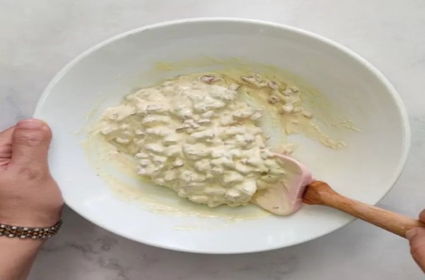 مخلوط زرده تخم مرغ در شیرینی پفکی گردویی