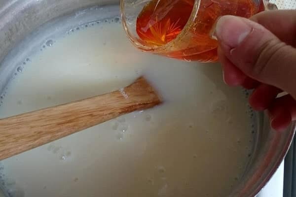 ۱. شیر و نشاسته را با یکدیگر مخلوط کنید
