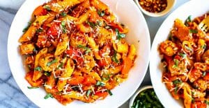 طرز تهیه پاستا اسفناج با سس گوجه فرنگی چیلی