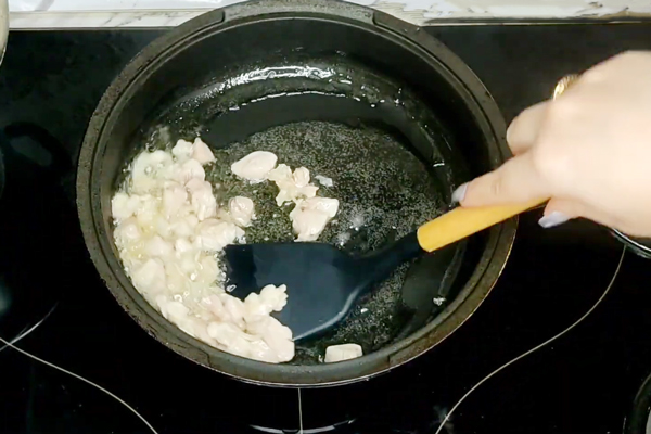حالا در یک تابه کمی روغن ریخته و آن را روی حرارت قرار بدهید. صبر کنید تا روغن کمی گرم شود. تکههای مرغ را به تابه اضافه کرده و سرخشان کنید. پس از سرخ شدن مرغ، آنها را باید به لپههای در حال پخت اضافه کنید. از طرز تهیه آش ماست ساده غافل نشوید.