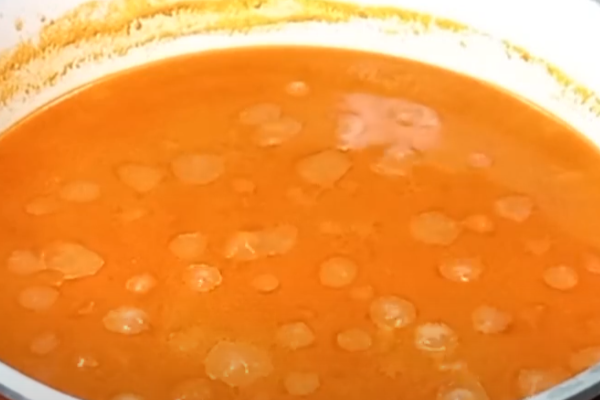 در یک قابلمه بزرگ، مقدار مناسبی روغن بریزید و پیازهای خلال‌ یا خورد‌شده را طلایی کنید. سپس گوجه‌فرنگی رنده‌شده را به آن اضافه کرده و تفت دهید تا آب آن گرفته شود. در پایان، رب گوجه‌فرنگی را اضافه کرده و چند دقیقه با مواد سرخ کنید تا طعم خامی رب گرفته شود.