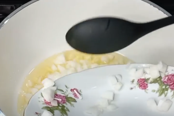 مرحله دوم: تفت دادن پیاز و گوجه