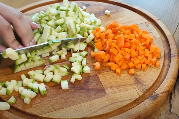 پیاز را نگینی خرد کرده و در قابلمهای با کمی روغن تفت دهید. بعد از اینکه پیاز نرم شد، سبزیجات خرد شده (هویج، کدو یا سیبزمینی) را به آن اضافه کنید. سبزیجات را کمی تفت دهید تا طعم بهتری به سوپ شما بدهند.