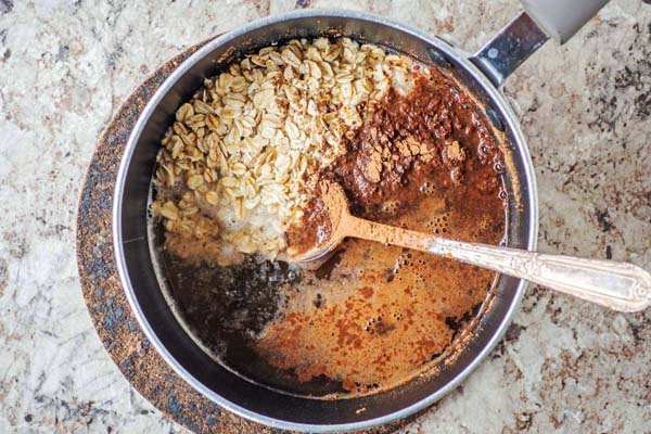 در اولین مرحله از طرز تهیه اوتمیل شکلاتی یخچالی باید مقدار جو دوسرپرک را به همراه دانه چیا، پودر کاکائو، وانیل، شیرینکننده استویا و شیر را داخل یک تابه مناسب بریزید. تابه را روی حرارت ملایم بگذارید. ۱۰ دقیقه مواد داخل تابه را هم بزنید تا غلظت لازم را پیدا کند. تابه را از رو حرارت بردارید. از دیگر صبحانههای رژیمی با جو دوسرپرک طرز تهیه اوتمیل دارچینی است که با خیال راحت میتوانید آن را درست و نوش جان کنید.