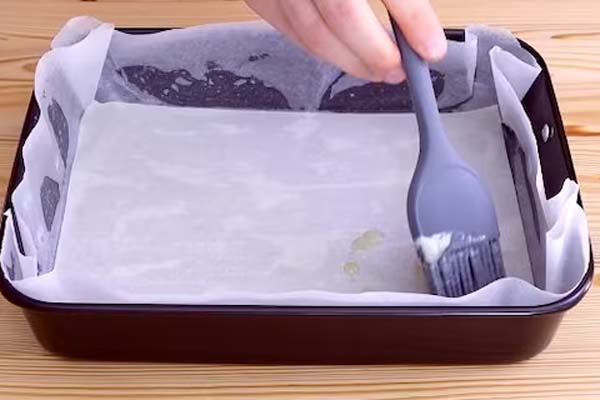 در این مرحله از طرز تهیه باقلوای گردویی باید یک قالب ۲۳ در ۲۳ سانتیمتری (یک قالب مربعی) برای خمیر فیلو در نظر بگیرید. خمیر فیلو را از وسط باز کنید. از آنجا که خیمرهای فیلو برای این قالب بزرگتر هستند باید آنها را به اندازه داخل قالب برش بزنید. حال کره را به همراه مقداری روغن زیتون داخل قابلمه بریزید و روی حرارت بگذارید. سپس قالب را با مخلوط کره کمی چرب کنید.