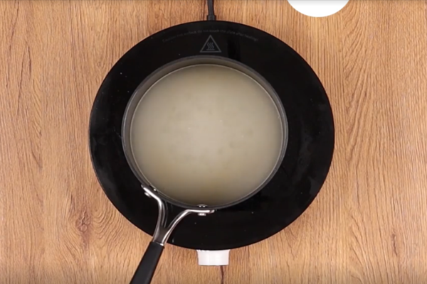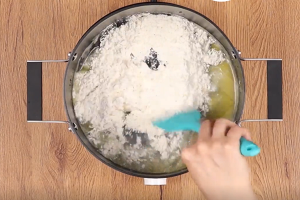 آب، شکر، نمک و کره را در قابلمهای بریزید و روی حرارت قرار دهید تا کره ذوب شود. سپس آرد را یکباره اضافه کنید و سریع هم بزنید تا خمیر جمع شود. خمیر را حدود ۵ دقیقه روی حرارت ملایم هم بزنید تا بوی خامی آرد گرفته شود. پس از آن، اجازه دهید خمیر کاملا خنک شود.