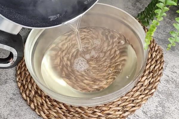 بعد از ۸ دقیقه، در قابلمه را بردارید و مقداری گلاب به شربت اضافه کنید. سپس شربت را از روی حرارت برداشته، در ظرف بزرگتر بریزید تا کاملا خنک شود.