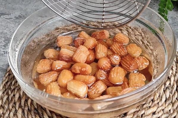 وقتی بامیهها به رنگ طلایی در آمدن، با استفاده از یک کفگیر یا توری روغنگیر، از روغن خارجشان کنید و بلافاصله داخل شربت سرد بریزید و بگذارید چند دقیقه در شربت خیس بخورد.