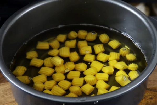 خمیرها را بلافاصله پس از برش زدن داخل کاسه حاوی روغن، بریزید. بهتر است که ابتدا مقدار کمی از خمیر را داخل روغن پایپ کنید، سپس بعد از سرخ کردن آنها بهسراغ مابقی خمیر بروید و کمکم تمام خمیر را درست کنید.