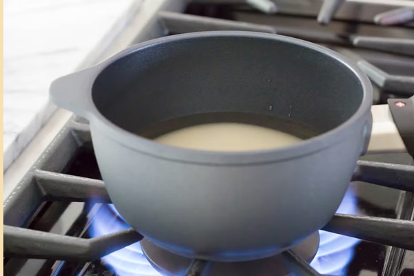 در مرحله بعد از طرز تهیه ترشی زنجبیل، برشهای زنجبیل را داخل یک ظرف تمیز و خشک قرار دهید و کنار بگذارید. در ادامه سرکه برنج، شکر، نمک و مقدار کمی آب را در یک قابلمه کوچک بریزید. قابلمه را روی حرارت متوسط قرار دهید تا مخلوط به جوش بیاید و مواد کامل حل شوند.