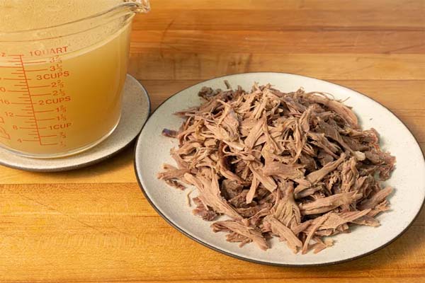 در دومین مرحله از طرز تهیه حلیم نذری باید گوشت را به همراه پیاز خرد شده، کمی نمک، فلفل و چهار لیوان آب داخل یک قابلمه بریزید تا با حرارت کم بپزد. بهترین زمان برای پخت گوشت حلیم نذری، دو تا سه ساعت است تا گوشت کامل پخته و نرم شود. در نهایت گوشت را بیرون بیاورید؛ آن را از استخوان جدا سپس ریش ریش کنید. آب گوشت را صاف کنید و برای اضافه کردن به حلیم کنار بگذارید. در صورت نبود گوشت مناسب بدون نگرانی طرز تهیه حلیم گندم بدون گوشت را بخوانید و آن را درست کنید.