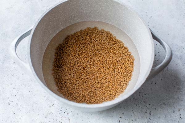 نکته: گندم را حتما با آب سرد خیس کنید؛ نه تنها به نرم شدن تدریجی آنها کمک میکند بلکه از ترکیدن آنها هم جلوگیری میکند.