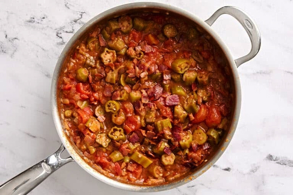یک قابلمه خورشت بامیه با گوجه فرنگی
