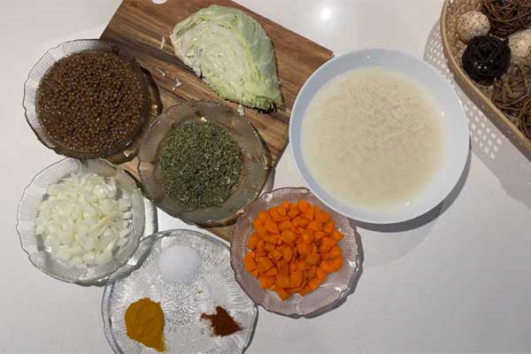 برای درست کردن این غذا هم باید ابتدا برنجها را پاک کرده و بشویید. سپس برنج را به همراه آب و ۱ قاشق غذاخوری نمک در یک کاسه بریزید و کنار بگذارید.