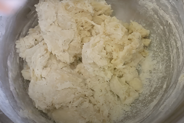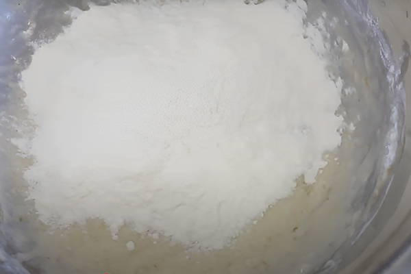 در این مرحله باید آرد را اضافه کنید؛ دقت کنید که آرد را یک جا به مایه مخمر اضافه نکنید و به تدریج و هر سری تنها یک چهارم پیمانه آرد بریزید و کلیه مواد را به خوبی مخلوط کنید. زمانی که مخلوط حالت خمیری به خود گرفت، مقدار آردی که اضافه میکنید را کم کنید و فقط تا میزانی آرد اضافه کنید که خمیر نرم شده و میزان چسبندگی آن کم شود. استفاده از آرد اضافی باعث افت کیفیت دونات میشود.