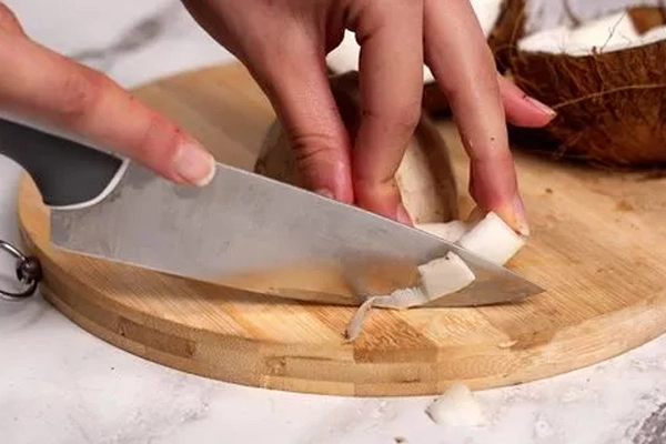 جدا کردن گوشت ممکن است کمی سخت باشد، اما اگر از چاقوی کرهخوری استفاده کنید، راحتتر و ایمنتر میتوانید تیغه را بین گوشت و پوست قرار دهید و تکههای نارگیل را بهراحتی بیرون بیاورید، بدون اینکه به دستتان آسیبی برسد.