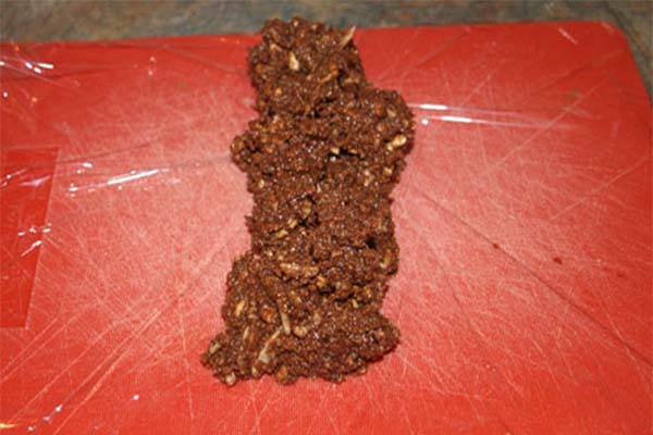 در سومین مرحله از طرز تهیه رولت یخچالی بدون شیر باید سطح قالبتان را کمی با روغن چرب کنید. برخلاف طرز تهیه رولت خامهای به روش ساده باید کف قالب یا سطح کارتان، نایلون یا سلفون پهن کنید سپس مخلوط را به آرامی روی سلفون بریزید. با قاشق یا گوشتکوب روی مخلوط را حسابی فشار دهید. با توجه به ذائقهتان میتوانید یک لایه از این مخلوط بریزید سپس یک لایه توتفرنگی خردشده روی آن بگذارید. سپس مابقی مواد را بریزید. در آخر روی مخلوط را نایلون یا سلفون بکشید. از هر دو طرف محکم ببندید. قالب را برای سه ساعت در یخچال بگذارید تا شکل رولت به خود بگیرد.