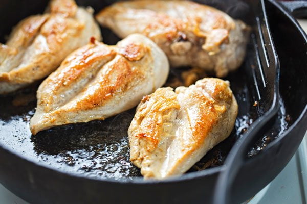 حالا برای تهیه زرشک پلو با مرغ ابتدا ماهیتابه را گرم کنید و مقداری روغن به آن اضافه کنید. تکههای مرغ را در روغن تفت دهید تا رنگشان طلایی-قهوهای شود. سپس آن را به طرف دیگر برگردانید و طرف دیگر مرغ را هم سرخ کنید.