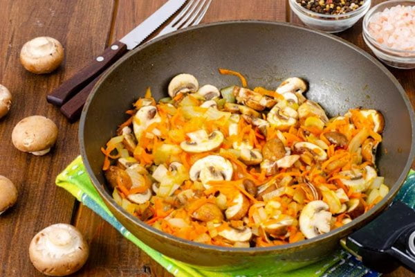 پیاز را پوست بگیرید و به قطعات کوچک خرد کنید. روغن و پیاز خرد شده را به ماهیتابه اضافه کنید و روی حرارت بگذارید. پیازها را سرخ کنید تا طلایی شوند. سپس زردچوبه، نمک، فلفل دلمهای، قارچ، هویج رنده شده و کاری را به پیازها اضافه کنید و آنها را مخلوط کنید. رب گوجه فرنگی را با آب رقیق کرده و به پیازها اضافه کنید. این سس ما برای مرغ است.