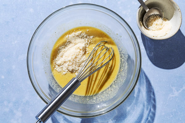 مرحله چهارم: روغن زیتون و پنیر پارمسان را اضافه کنید