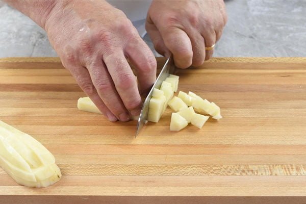 برای تهیه سالاد ماکارونی با سیبزمینی، ابتدا سیبزمینیهای پوستگرفته و مربعی خردشده را با نمک، فلفل و کره بپزید. تنها مراقب باشید له نشوند. در ادامه، هویج نگینی و نخودفرنگی را جداگانه پخته و همزمان تخممرغها را آبپز کنید.