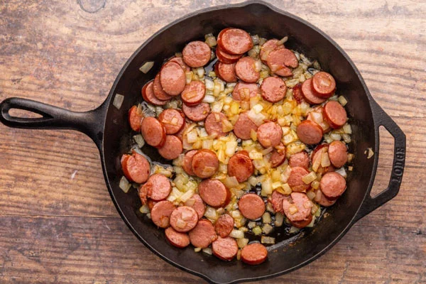 برای آماده کردن سوسیسها، سوسیس را به صورت حلقهای یا هر شکل دلخواه خرد کنید؛ اجازه دهید ابتدا روغن داغ شود؛ سپس پپرونیها را دستهای سرخ کنید.این کار برای جلوگیری از چسبیدن پپرونیها به هم است.