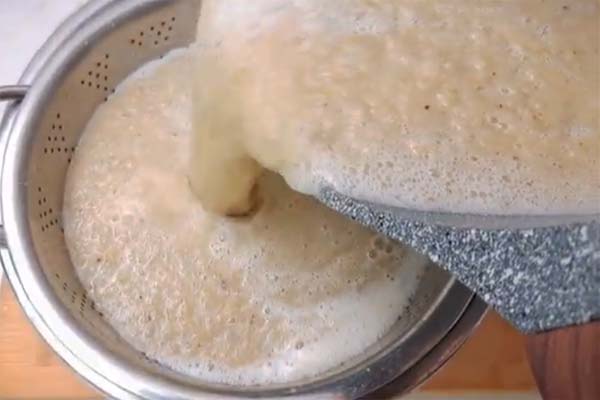 در دومین مرحله از طرز تهیه شیره توت سفید باید توت پخته شده را از یک پارچه تنظیف یا صافی ریز رد کنید تا آب آن کامل جدا شود. فقط مراقب باشید که آب به بیرون از ظرف نریزد. بهتر است با دستانتان پارچه را فشار دهید تا عصاره توت بهتر گرفته و استخراج شود.