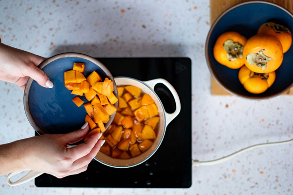 مرحله سوم: شکر و خرمالوها را اضافه کنید