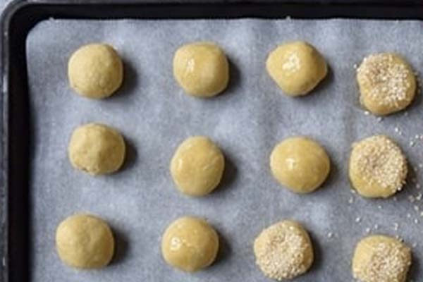 در دومین مرحله از طرز تهیه شیرینی اسکار کنجدی به یک سفیده تخممرغ نیاز دارید. سپس از خمیر به اندازه دلخواه برداشته و در دستان خود گرد کنید. سپس آنها را به ترتیب در سفیده تخممرغ و کنجد بغلتانید. در ادامه شیرینیها را با فاصله از هم در سینی فر بچینید. سینی را برای ۱۵ دقیقه داخل فر از قبل گرمشده با دمای ۱۸۰ درجه سانتیگراد بگذارید. شیرینیها را از فر بیرون بیاورید. کمی که از حرارت افتاد با پودر قند تزئین کنید. با زرده تخممرغ باقیمانده میتوانید شیرینی پفکی گردویی با زرده، کنار شیرینی اسکار درست کنید.