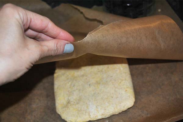 در سومین مرحله از طرز تهیه شیرینی پادرازی باید خمیر را از یخچال بیرون بیاورید. سپس آن را روی یک کاغذ روغنی بگذارید. حال روی خمیر را هم با کاغذ روغنی بپوشانید سپس با کمک وردنه یا پشت کفگیر، خمیر را به ضخامت یک سانتی‌متر باز کنید.