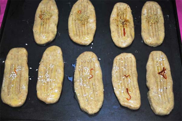 شما در این روش باید اندازه یک فندق از خمیرتان بردارید. دو طرف خمیر را مانند اشک شکل دهید. فشار کوچکی به سطح شیرینی‌ها وارد کنید. در ادامه با کمک چاقو یا چنگال چند شیار روی خمیر بیاندازید.