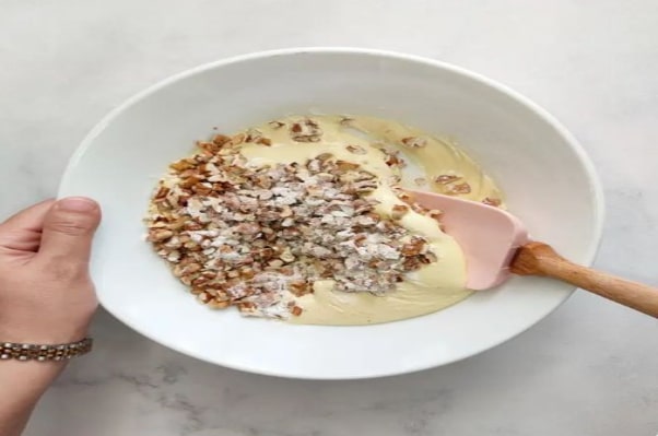 مخلوط زرده تخم مرغ در شیرینی پفکی گردویی