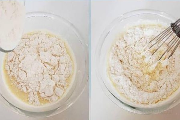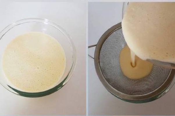 در دومین مرحله از طرز تهیه شیرینی پنجره ای با ماست نوبت به اضافه کردن دیگر مواد میرسد. در ادامه ماست، وانیل، پودر هل، آرد و زعفران گفتهشده را به مخلوط اضافه کنید. آنها را با کمک همزن خوب با یکدیگر مخلوط کنید. حال مایه شیرینی پنجرهای را از یک صافی تمیز رد کنید تا نشاسته حلنشدهای در مایه باقی نماند.