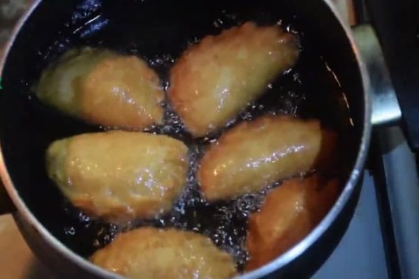هنگام قرار دادن مواد میانی داخل خمیر کمی از آن به لبهها چسبیده و از چسبیدن لبههای خمیر به یکدیگر جلوگیری کرده است. با قرار گرفتنشان در روغن داغ، از هم باز میشوند. دلیل دیگر کم بودن میزان آرد و پف بیش از حد آن بوده است. دقت داشته باشید با باز کردن یک جا خمیر، خمیر هوا خورده و رطوبتش را از دست میدهد.