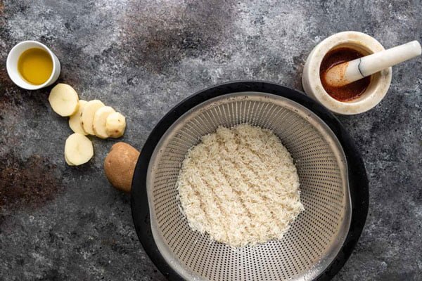 ۱. آماده کردن مواد و خیساندن برنج برای آبکش کردن