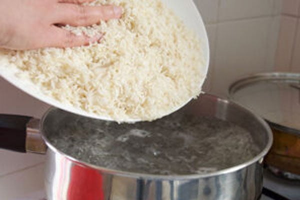 آب برنجی که خیس خورده را دور بریزید و در یک قابلمه مناسب آب کافی بریزید و بگذارید به جوش آید. بعد از این که آب جوش آمد برنج را اضافه کنید و اجازه دهید به مدت ۱۲-۱۶ دقیقه نرم شود. برای این که مطمئن شوید برنج آماده آبکش کردن است یک دانه را از قابلمه بیرون بیاورید و لابهلای انگشتتان قرار دهید. اگر وسطش نرم شده و دو طرفش سفت است یعنی زمانش رسیده که آبکش کنید پس برنج را آبکش کنید و اجازه دهید آبش برود.