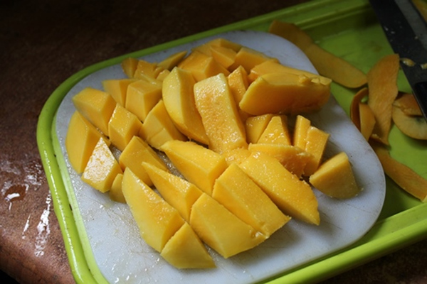 برای داشتن مربایی با بافت عالی، گوشت انبه را به قطعات مکعبی یکدست در اندازههای یکونیم تا دو سانتیمتر خرد کنید. با این اندازههای یکسان، مربا نه تنها یکنواخت میپزد بلکه طعم و رنگ آن هم حفظ خواهد شد. اگر جدا کردن پوست انبه برایتان دشوار است مطلب سادهترین روش پوست کندن انبه کمکتان خواهد کرد.