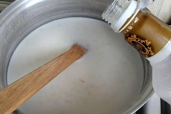 در اولین مرحله از طرز تهیه مشکوفه با شیر باید یک قابلمه بزرگ انتخاب کنید تا نشاسته و شیر را درون آن بریزید. شما در ادامه تهیه این دسر خوشمزه باید مخلوط را مدام هم بزنید تا نشاسته گلولهگلوله نشود. قابلمه را روی حرارت کم بگذارید تا مخلوط شیر و نشاسته گرم شود. شما در این مرحله باید مراقب باشید که مخلوطتان ته نگیرد یا نسوزد.