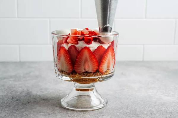 برای درست کردن پارفه توت فرنگی و هر نوع دسر دیگری که با توت فرنگی تازه تهیه میشود، بهتر است از توت فرنگیهای رسیده و شیرین استفاده کنید. اگر توتفرنگیهای شما بیش از حد رسیده و کمی له هستند، میتوانید با آنها یک سس توت فرنگی جذاب برای تزیین دسرها و لایه میانی پارفهتان درست کنید. از توتفرنگیهای سالمتر برای تزیین روی دسرتان بهره بگیرید.