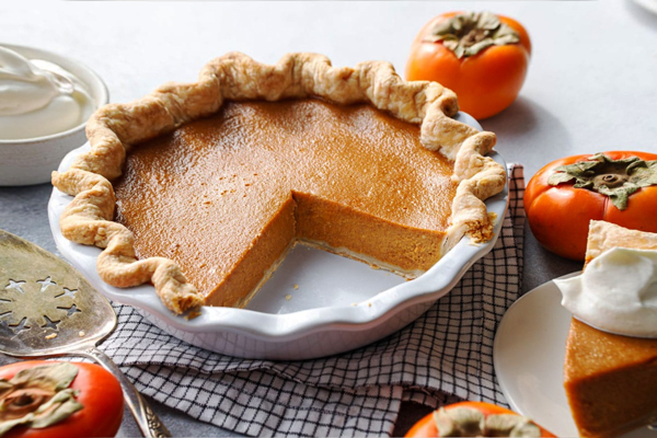 خرمالوی کاملا رسیده و نرم با بافت ژلهای و طعمی شیرین بهترین گزینه برای پای است، زیرا طعم طبیعی میوه حفظ شده و مواد میانی مرطوب و نرم باقی میمانند.