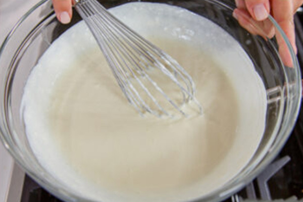 • دو قاشق غذاخوری از آن را کنار بگذارید و به‌جای آن دو قاشق غذاخوری نشاسته ذرت اضافه کنید.