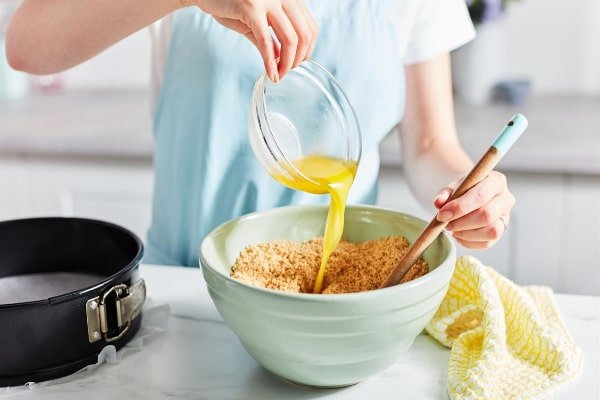 مرحله اول: بیسکویت و کره را مخلوط کنید