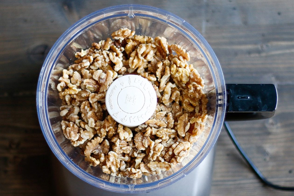 اگر گردوهایتان را بو ندادهاید، پس استفاده از یک غذاساز یا مخلوطکن پرسرعت ضروری است. این نکته را در نظر داشته باشید که فرآیند مخلوط کردن گردوهای خام بسیار بیشتر طول میکشد (۱۵-۲۰ دقیقه) و شما باید هر سه تا چهار دقیقه، کار را متوقف کنید. با یک کفگیر پلاستیکی، دیوارههای آن را بتراشید تا غذاساز یا مخلوطکن شما خنک شود و استراحت کند تا موتور بیش از حد گرم نشود.