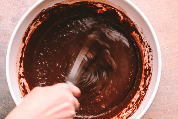 اضافه کردن آب جوش، ماست یا کمی خامه ترش به مایه کیک باعث میشود بافت کیک نرم و مرطوب بماند و طعم شکلاتی غنیتری داشته باشد.