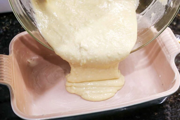 حالا مایه کیک را داخل قالبی که از قبل چرب کردهاید بریزید و سطح آن را صاف کنید. این مرحله، پایه اصلی کیک دارچینی خوشعطر شما خواهد بود. کیک سیب و دارچین گزینه مناسبی برای دورهمی روزهای پاییزیتان است.